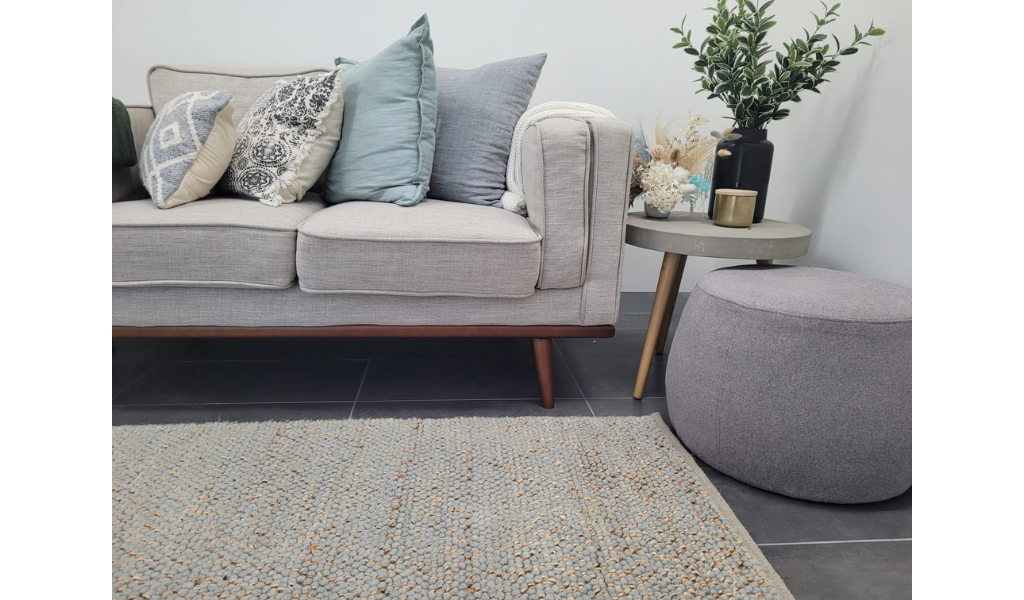 Bring a sense of calm and texture to your space with the Evie Blue Handwoven Braided Wool Blend Rug, where soft coastal hues meet artisanal craftsmanship. Lovingly handwoven using a beautifully balanced wool blend, this piece offers the perfect mix of softness and durability underfoot.Its chunky braided texture highlights soothing duck egg blue tones threaded through natural jute fibres, creating a relaxed, organic feel that complements coastal, modern and Scandinavian interiors alike.With a low-profile construction, the Evie Blue is both practical and stylish. It's well suited to high-traffic areas such as living rooms, dining spaces or hallways. This rug brings warmth, dimension and effortless charm to any room, and pairs beautifully with neutral tones, greenery and timber accents.