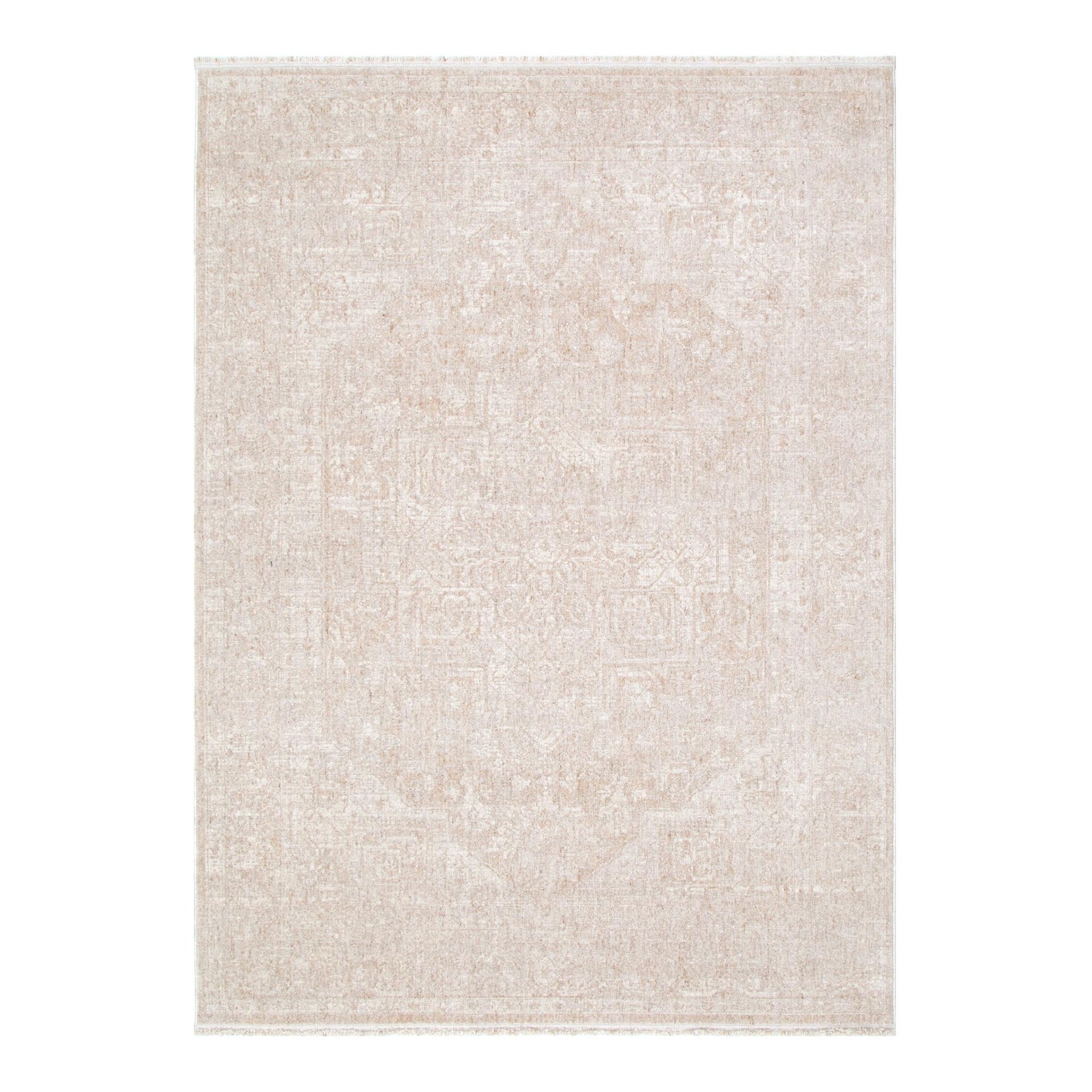 Hera Beige Distressed Medallion Rug (Premium Tassel Edge)