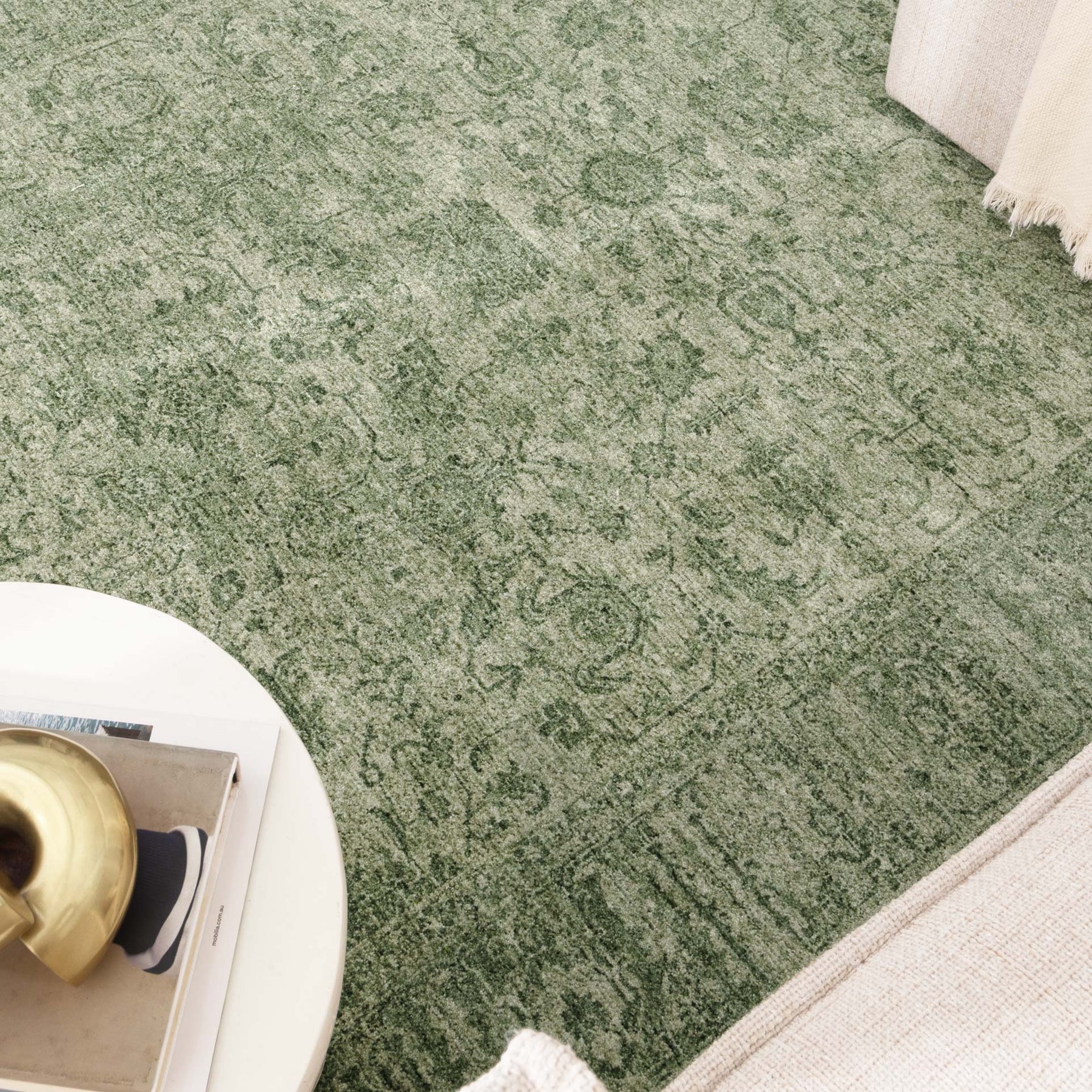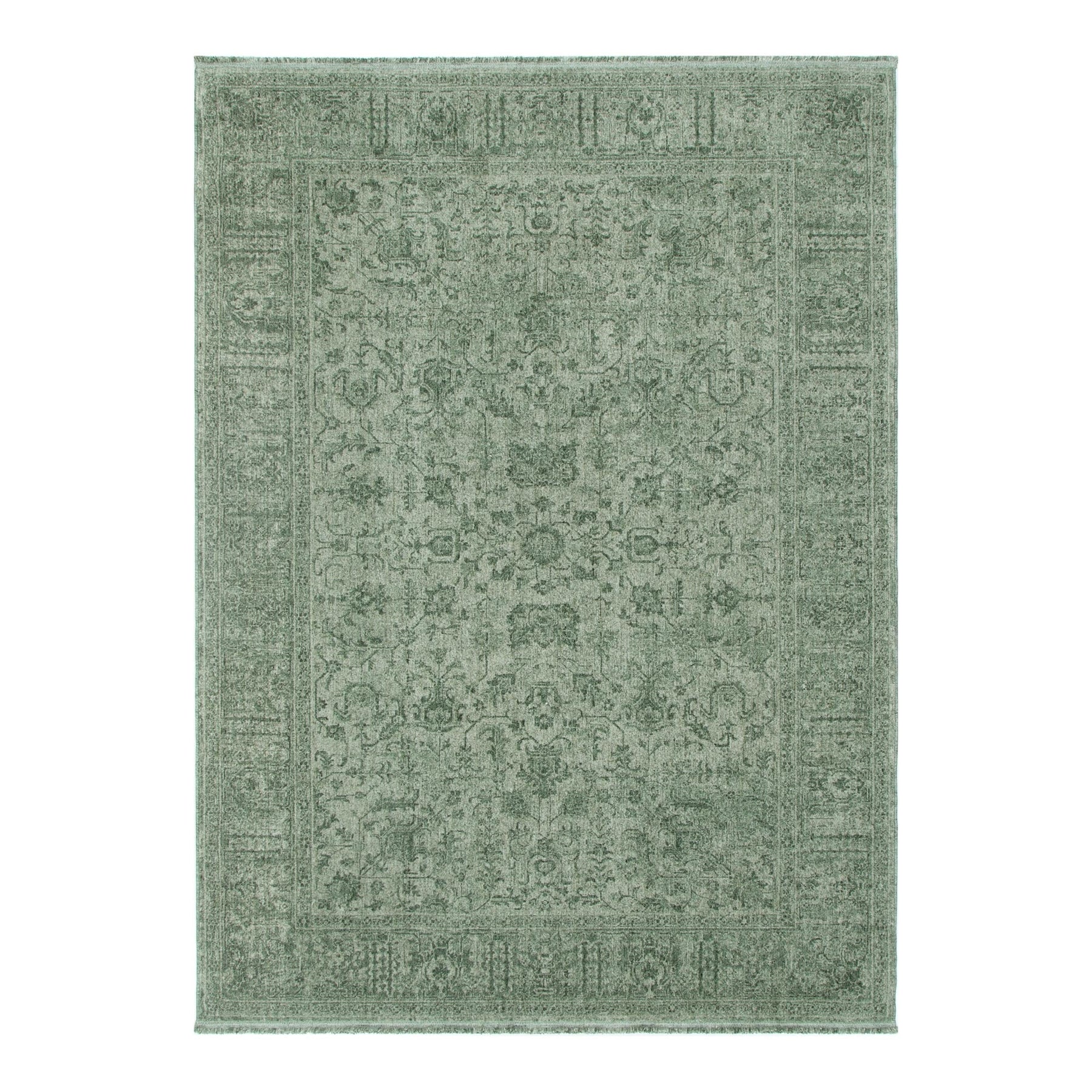Hera Green Distressed Border Rug (Premium Tassel Edge)