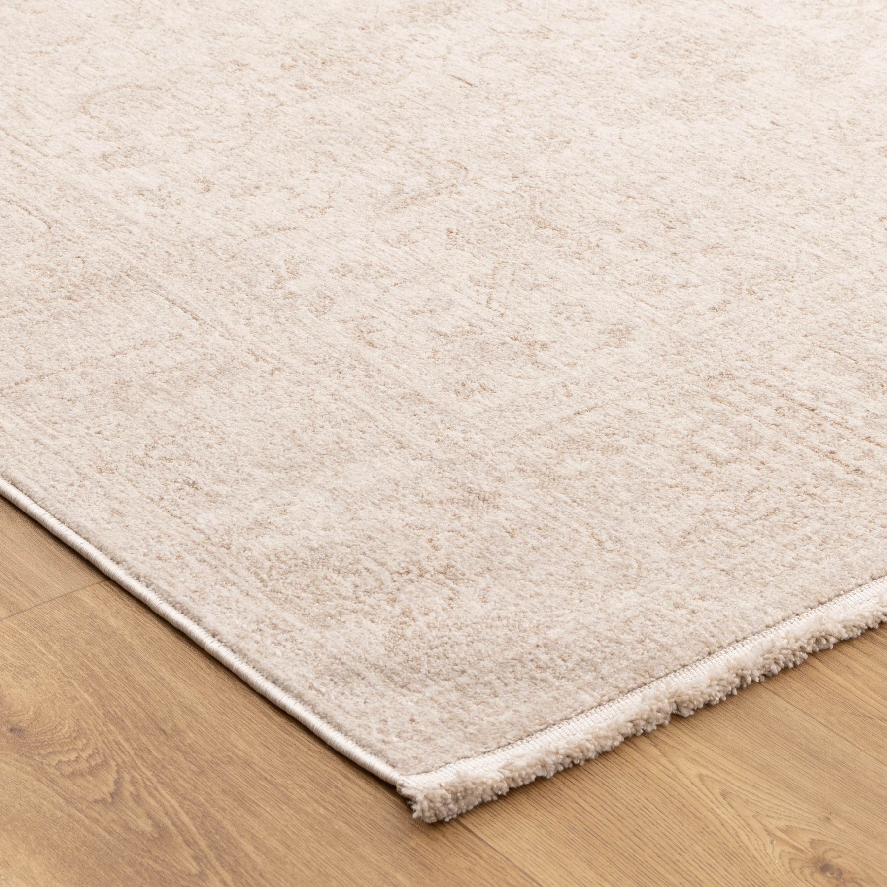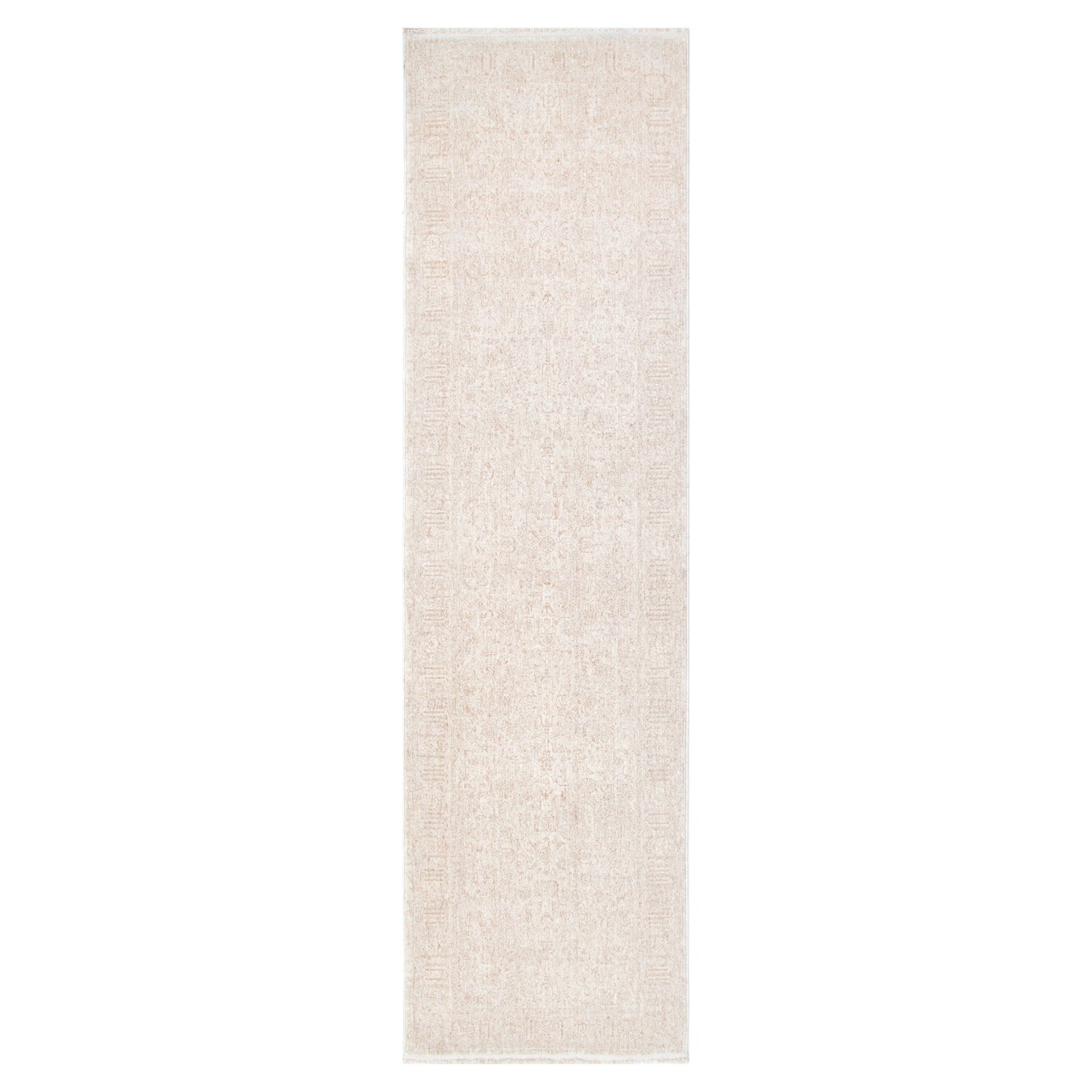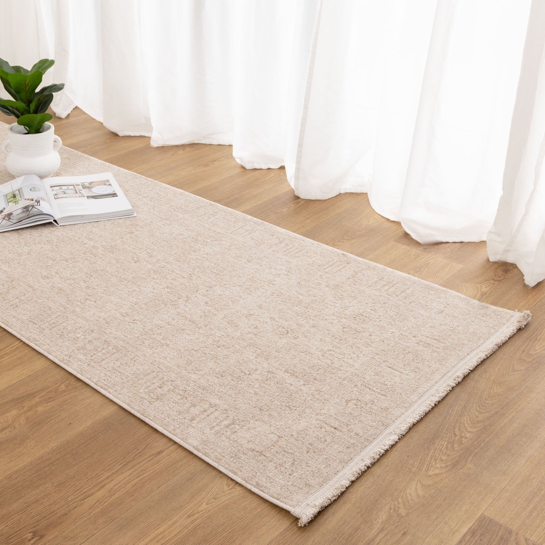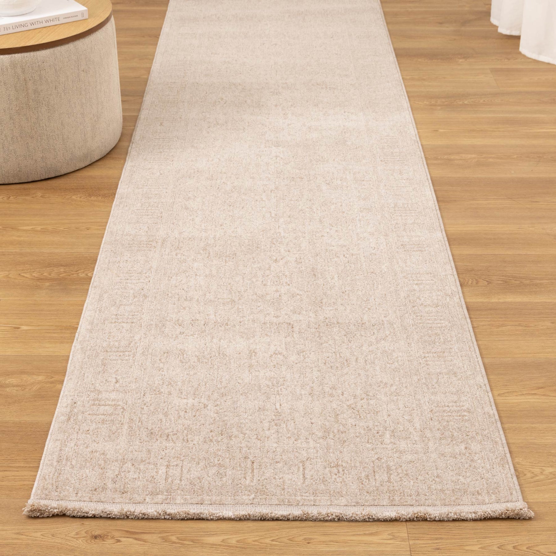 Hera Beige Distressed Border Runner Rug (Premium Tassel Edge)