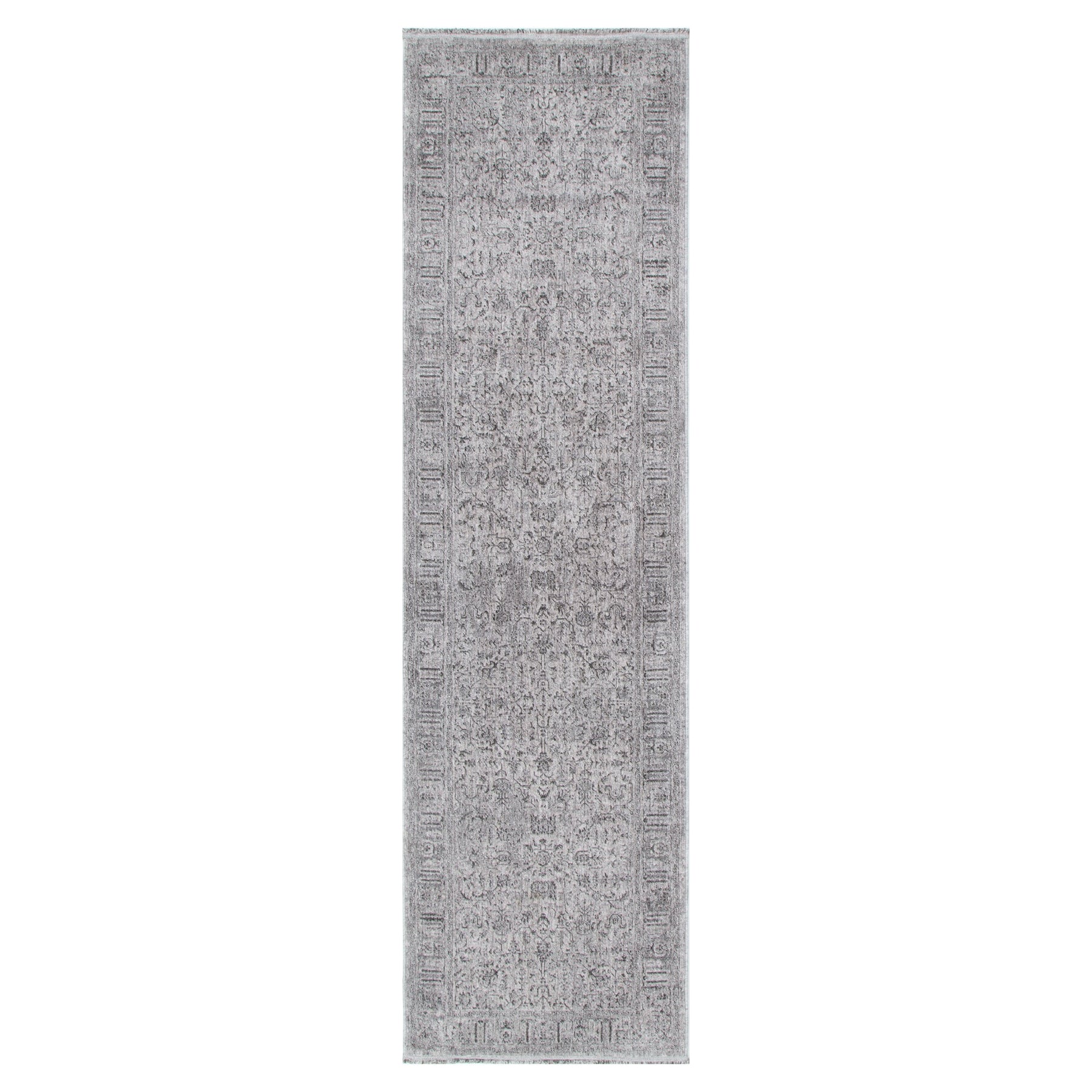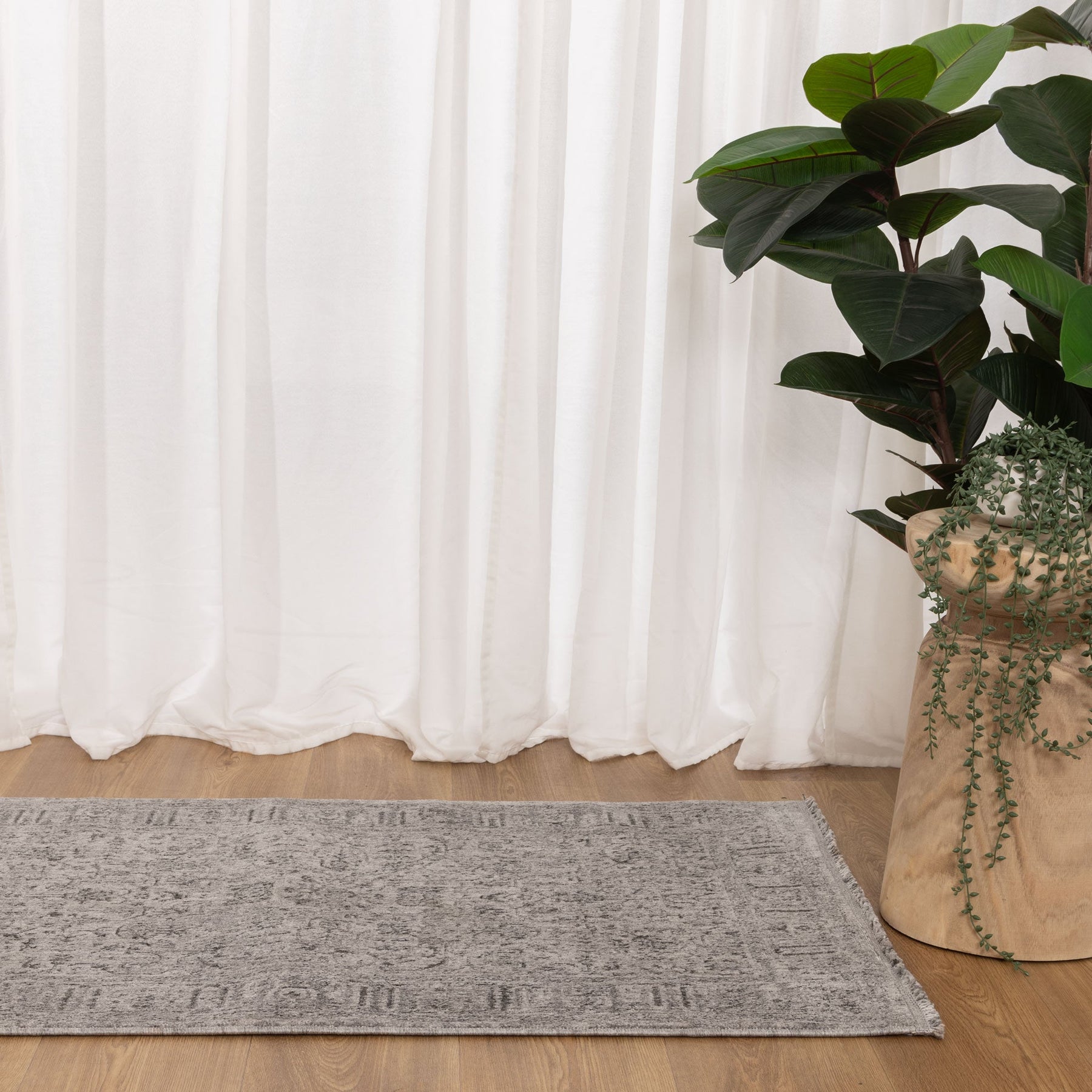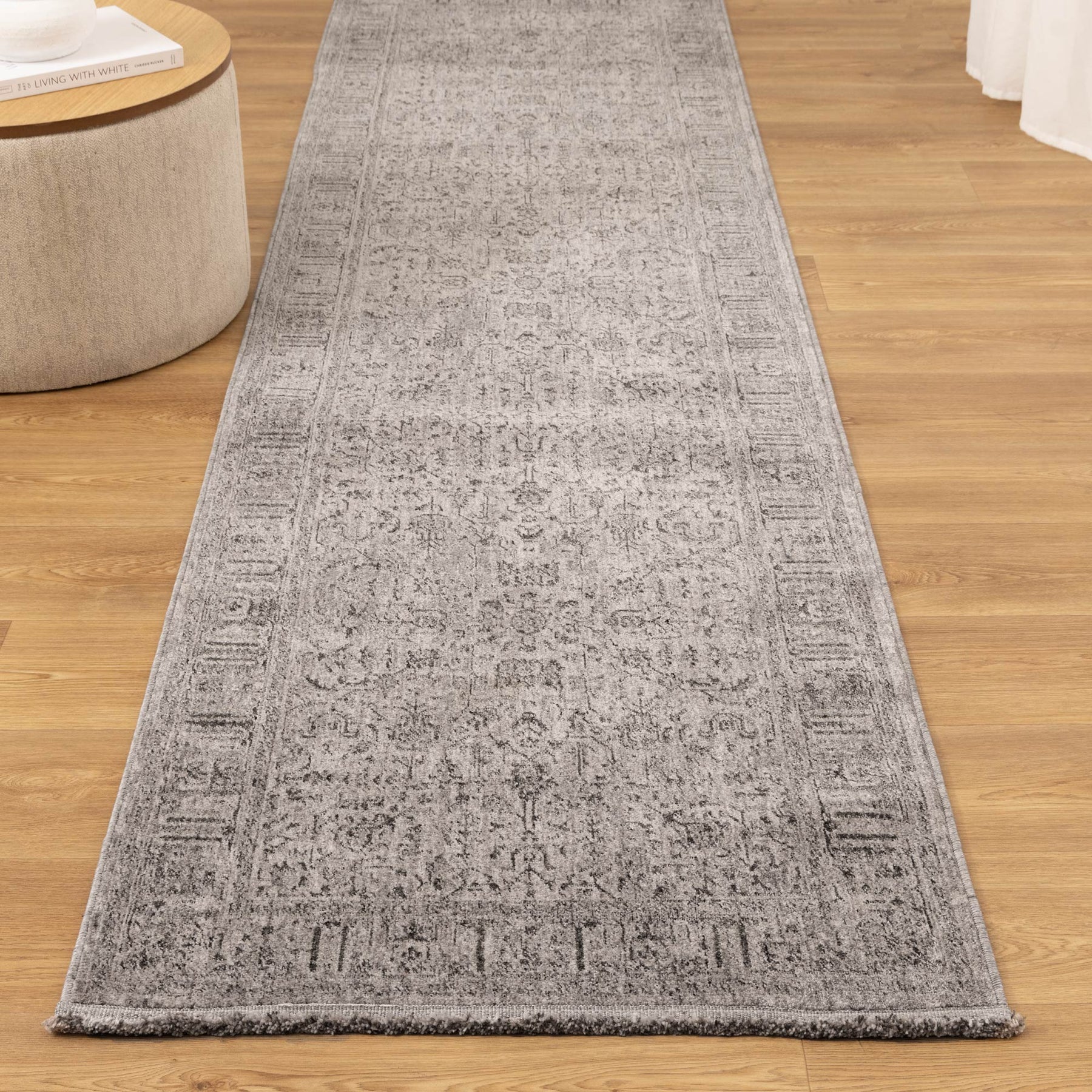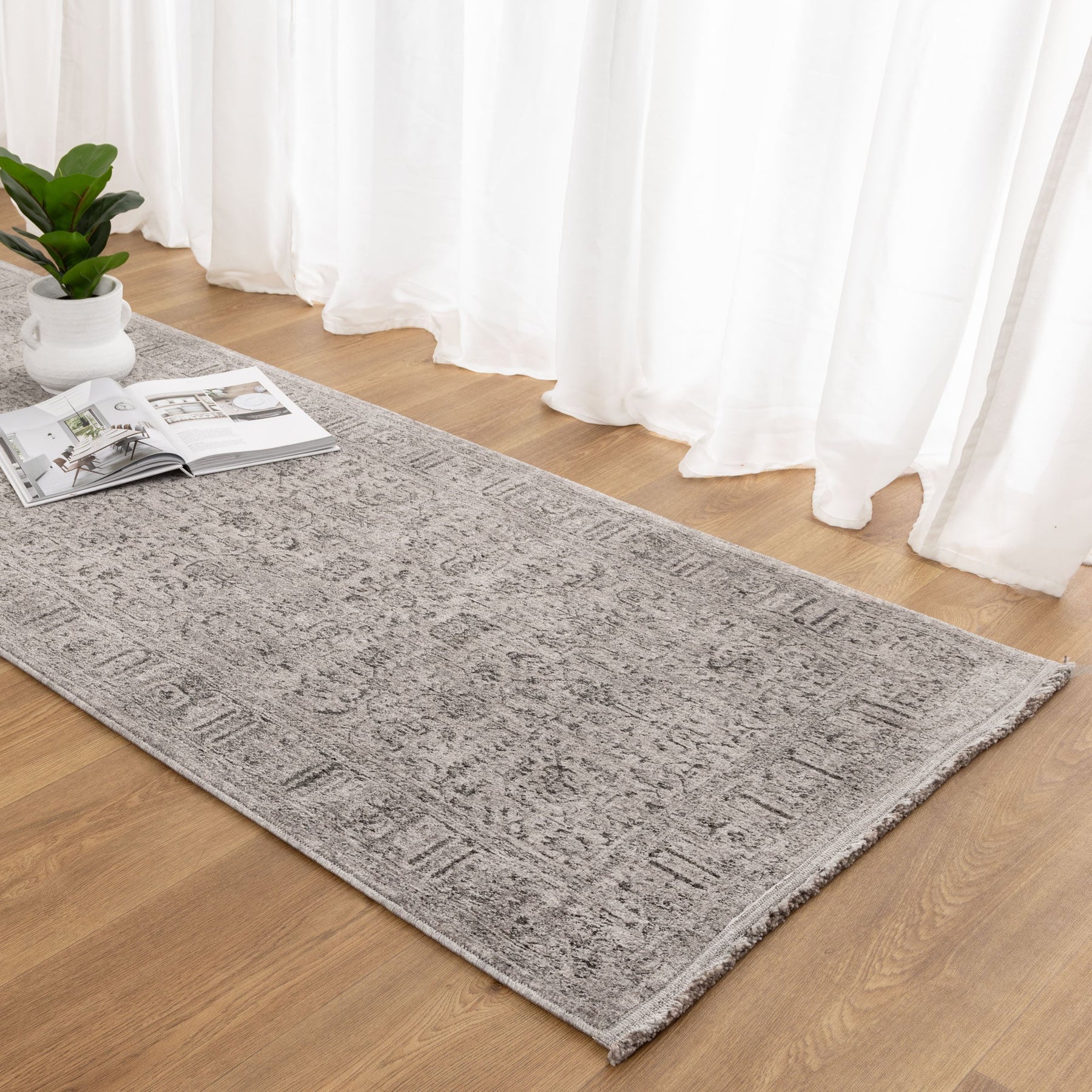 Hera Grey Distressed Border Runner Rug (Premium Tassel Edge)